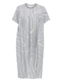 glitter-pattern short-sleeve dress Highlights - Grey - Glittered - Short sleeves - Round neck - Abstract pattern - Midi length Made in Italy Composition Base: Polyamide 65%, Polyester 30%, Elastane 5% SIZE & FIT Model measurements Height 5 ft 10 in(1.78 m) Bust/Chest 31.49 in(80 cm) Hips 37 in(94 cm) Waist 23.62 in(60 cm) Washing instructions Read Manufacturer Guidelines