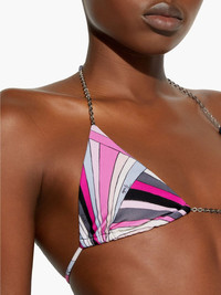 Iride bikini top Highlights - Black - Self-tie fastening - Triangle cup - All-over graphic print - Be mindful to try on swimwear over your own garments. Made in Italy Composition Elastane 20% Lining: Polyester 84%, Elastane 16% Outer: Polyamide 80% Washing instructions Hand Wash