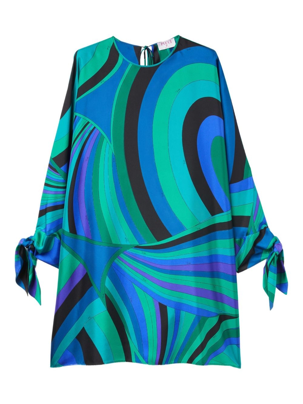 Iride-patterned dress Highlights - Green - Round neckline - Long sleeves - Tie details at cuff - Rear lace-up fastening - Fluid silhouette - Iride design Made in Italy Composition Fabric 100%