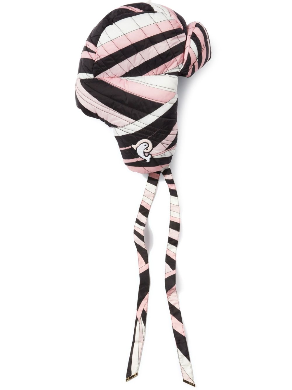 iride-print Chaptka hat Highlights - Black/pink - Quilted - Pull-on style - Tie-fastening straps - Embroidered logo to the front Made in Italy Composition Outer: Polyamide 100% Lining: Polyamide 100%, Recycled Polyester 100% SIZE & FIT Measurement CIRCUMFERENCE 22.04 in(56 cm)