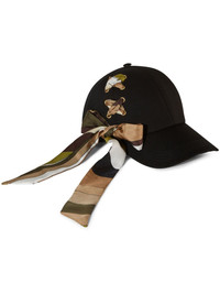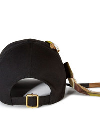 Iride-print cotton cap Pucci's black cap is crafted from cotton in Italy. It's made unique with its silk scarf woven through eyelets and printed with the label's signature Iride print in multicoloured hues. Highlights - Black - Multicolour - Cotton - Silk - Abstract pattern print - Scarf detailing - Eyelet detailing - Curved peak - Fabric-covered button at the crown - Adjustable strap to the rear - Gold-tone hardware Made in Italy Composition Cotton 100%, Silk 100% Washing instructions Dry Clean Only