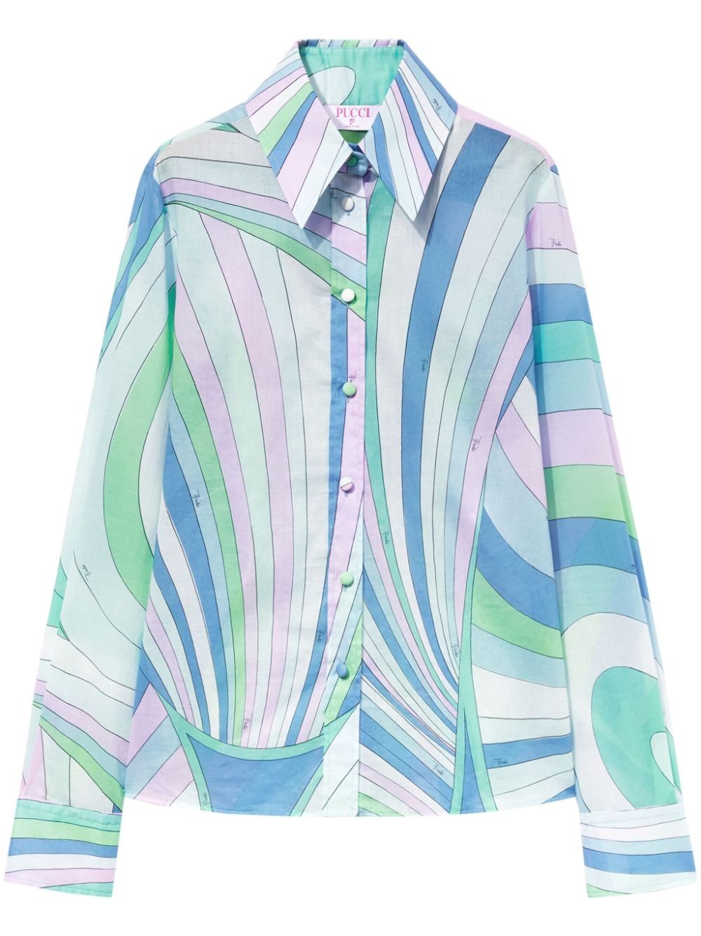 Iride-print cotton shirt Highlights - Sky blue/multicolour - Cotton - All-over iride print - Fabric-covered buttons - Oversized pointed collar - Front button fastening - Long sleeves - Straight hem Made in Italy Composition Cotton 100%