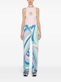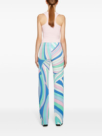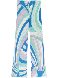 Iride-Print flared trousers Highlights - Navy blue/multicolour - Abstract pattern print - Elasticated waistband - Flared design Made in Italy Composition Viscose 82%, Nylon 18% SIZE & FIT Measurement FRONT RISE 10.62 in(27 cm) INSIDE LEG 35.82 in(91 cm) HIPS 37 in(94 cm) WAIST 27.55 in(70 cm)