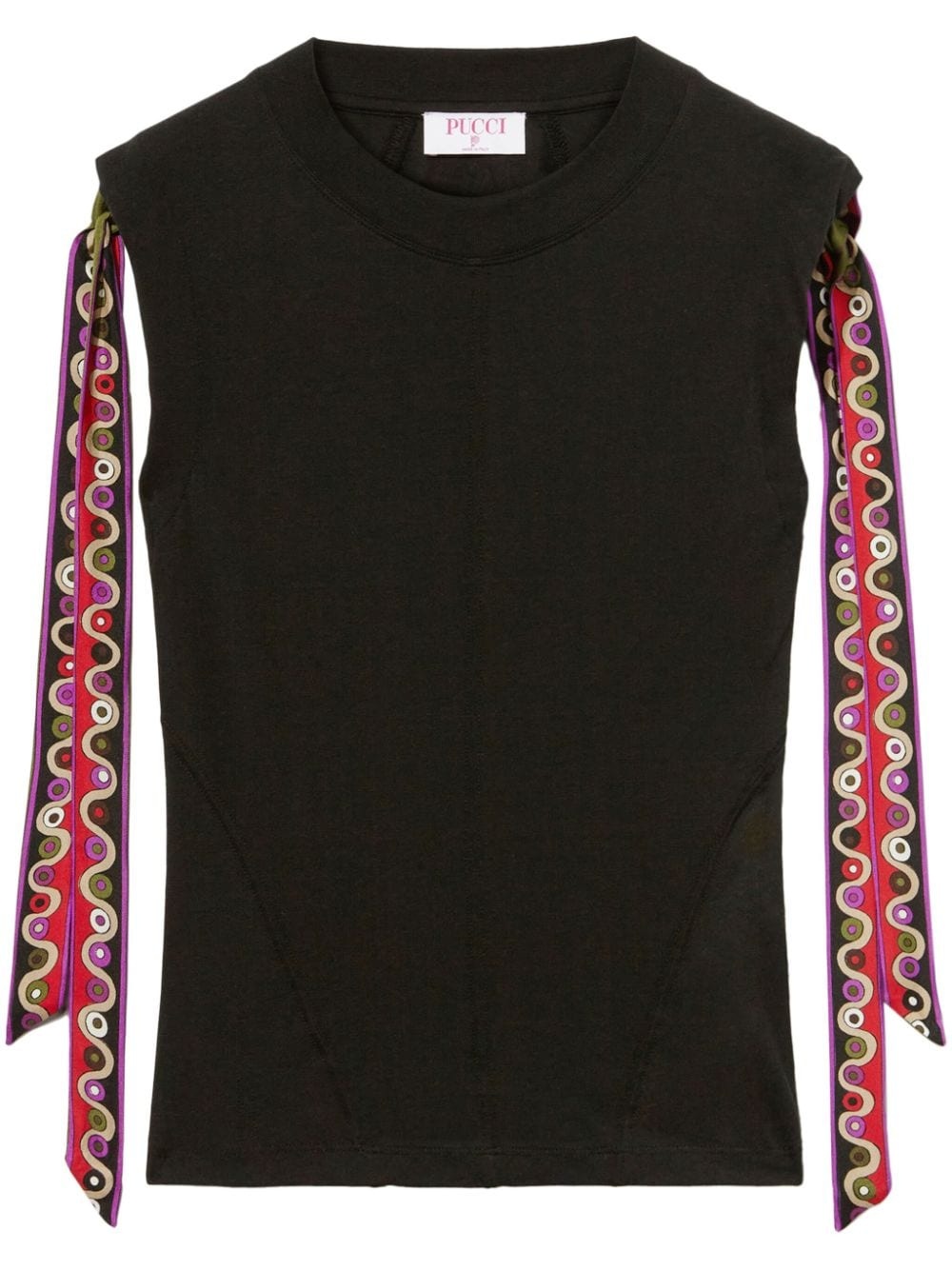 Iride-print jersey T-shirt Highlights - Black - Cotton blend - Jersey texture - Panelled design - Logo print to the rear - Contrasting trim - Round neck - Sleeveless Imported Composition Cotton 50%, Modal 50%