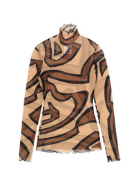 labirinto-print long-sleeve top Highlights - Beige and brown - Abstract pattern - Long sleeves - High neck - Frill trim Imported Composition Polyamide 87%, Spandex/Elastane 13% Washing instructions Read Manufacturer Guidelines