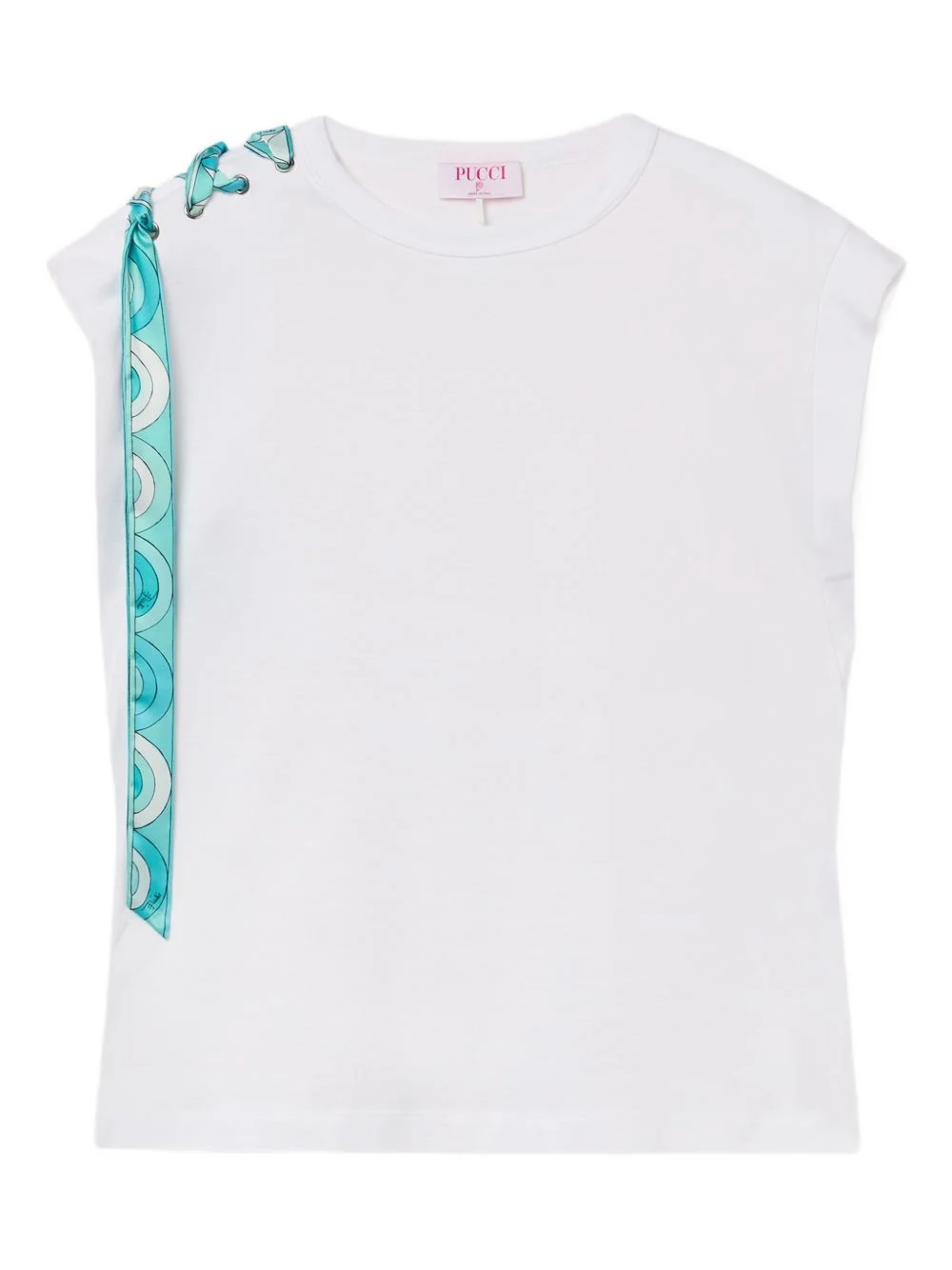 lace-up cotton T-shirt Highlights - White/blue - Graphic print - Lace-up detail - Round neck - Cap sleeves - Straight hem Made In Italy Composition Cotton 100% Washing instructions Hand Wash
