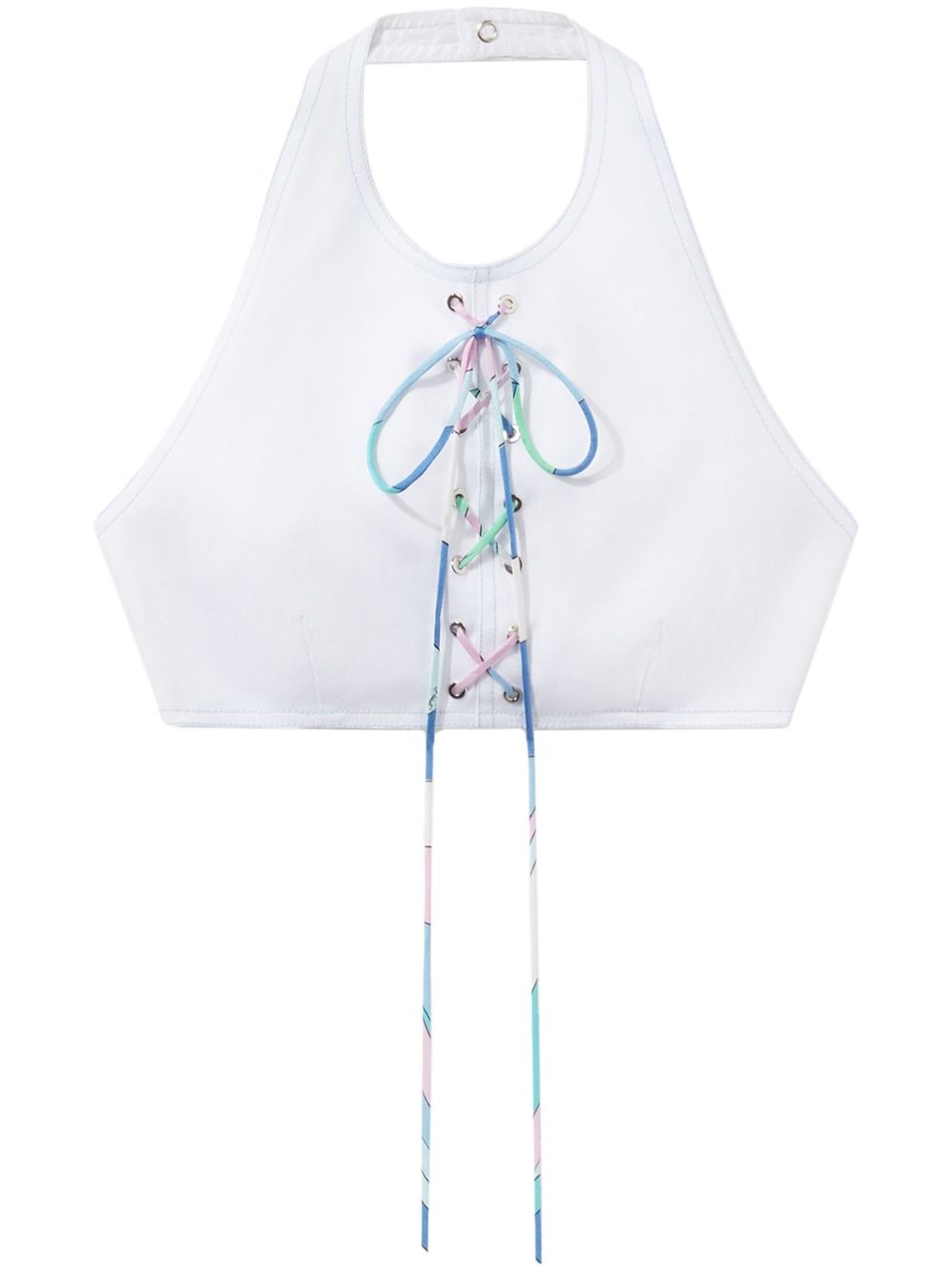 lace-up top Highlights - White - Rear press-stud fastening - Halterneck - Cropped Made in Italy Composition Lining: Acetate 67%, Polyester 33% Outer: Cotton 98%, Spandex/Elastane 2%