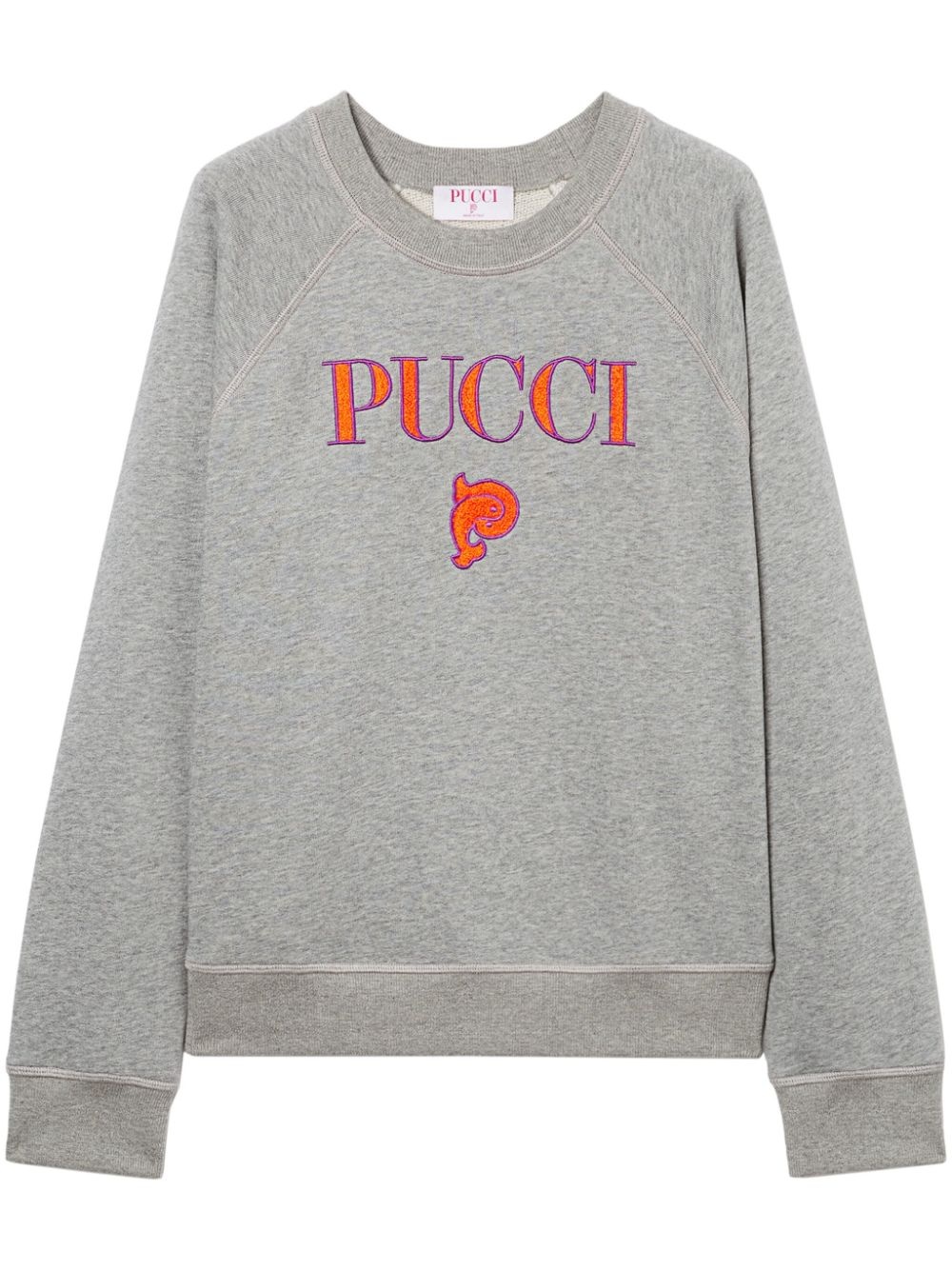 logo-embroidered cotton sweatshirt A wardrobe staple, this heather-grey PUCCI sweatshirt is made from cotton to a raglan-sleeve silhouette neatened by ribbed trims. A pop of colour is added in the form of orange and purple logo embroidery to the front. Highlights - Heather grey - Cotton - Embroidered logo to the front - Ribbed trim - Crew neck - Long raglan sleeves - Straight hem Made in Italy Composition Cotton 100%