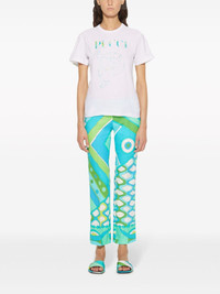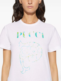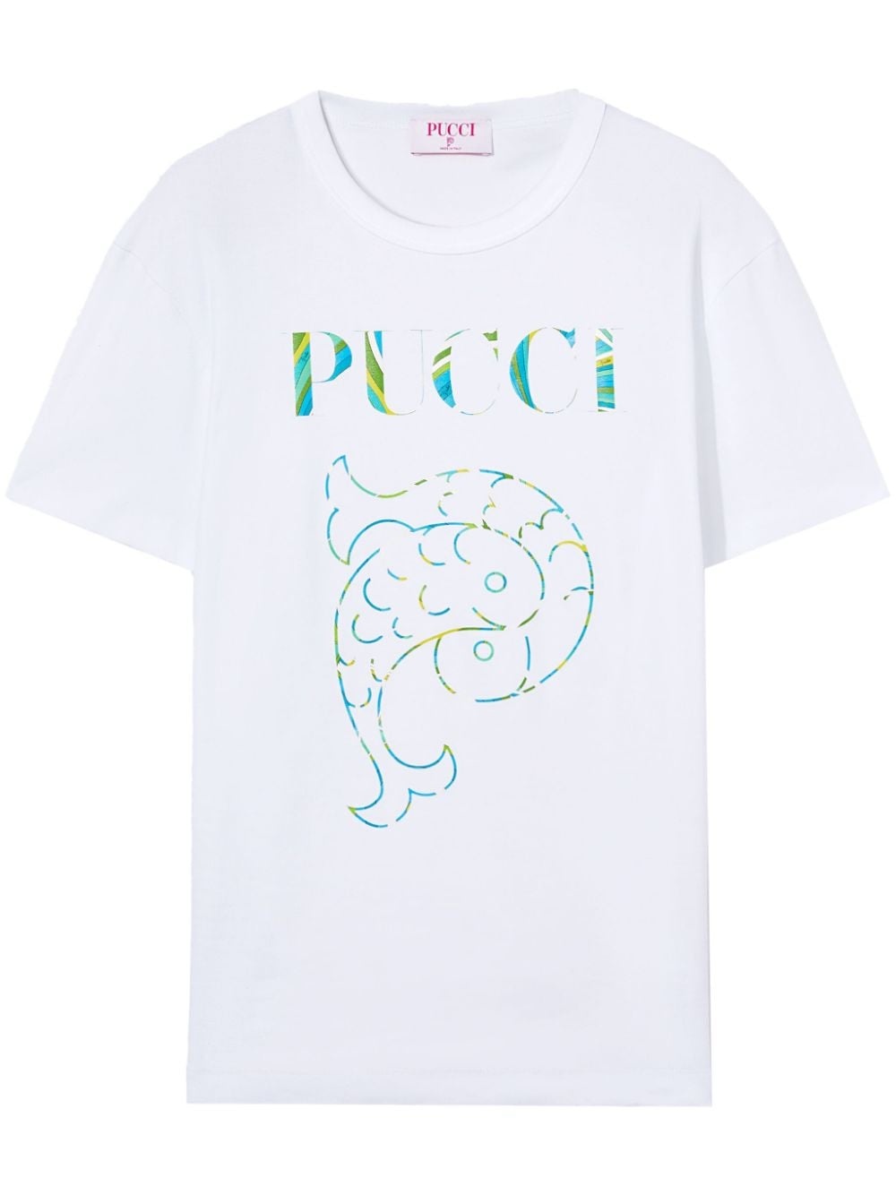 logo-print cotton T-shirt Imagined by creative director Camille Miceli as an ode to the oceans, PUCCI's logo depicts two interlocking fish in the shape of the brand's initial. Combined with the house's signature Iride print, it adorns this T-shirt's white cotton base. Highlights - White - Cotton - Jersey texture - Logo print to the front - Crew neck - Short sleeves - Straight hem Made in Italy Composition Cotton 100%