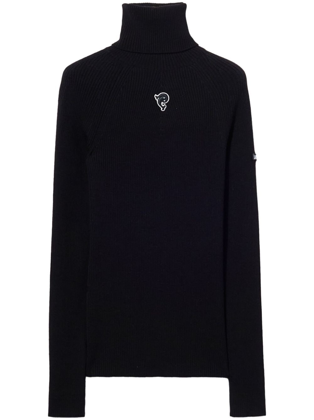 logo sweater Highlights - Black - Roll neck - Long sleeves - Logo patch to the front - Logo patch at the sleeve - Straight hem Made in Italy Composition Virgin Wool 58%, Nylon 35%, Elastane 7%