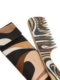 Marmo-print comb Highlights - Brown - Wood - Marmo print - Case included - Curved handle - Wide teeth Made in Italy Composition Silk 100%, Beech Wood 100%