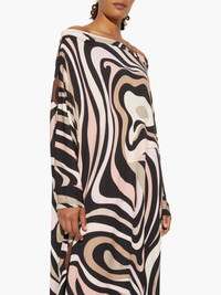 marmo-print dress Highlights - Black - Boat neck - Long sleeves - Curved hem - Long length Made in Italy Composition Viscose 100%