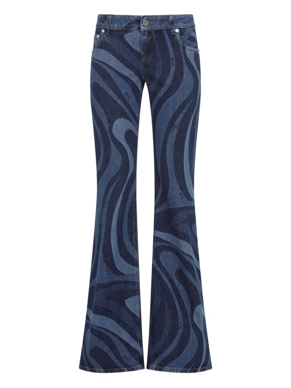 Marmo-print flared jeans Highlights - Blue - Concealed fly and button fastening - Belt loops - Classic five pockets - Logo patch to the rear Made in Italy Composition Cotton 99%, Elastane 1% Washing instructions Read Manufacturer Guidelines