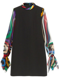 Printed silk chiffon-trimmed cady mini dress