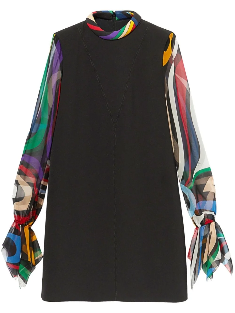 Marmo-print mini dress Highlights - Black/multicolour - Cady texture - Abstract pattern print - Concealed rear zip fastening - Mock neck - Long sheer sleeves - Elasticated cuffs - Straight hem - Thigh-length Made in Italy Composition Lining: Acetate 67%, Polyester 33% Outer: Polyester 92%, Spandex/Elastane 8% Washing instructions Read Manufacturer Guidelines