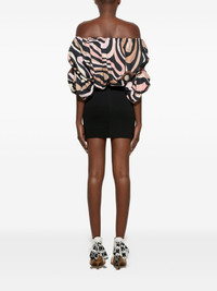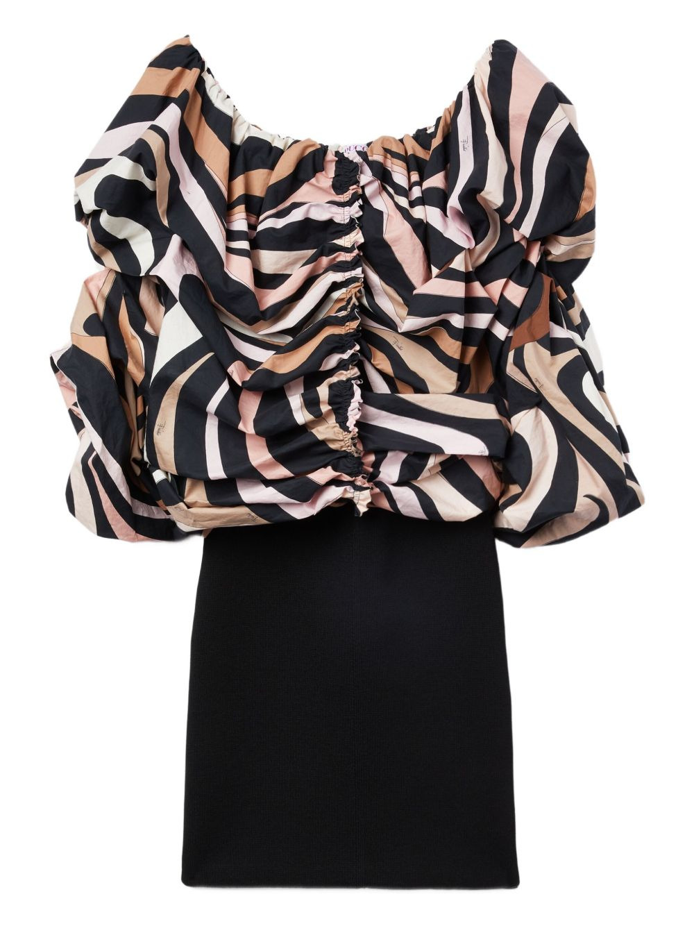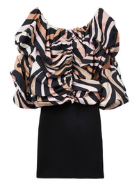 off-shoulder puff-sleeve dress Highlights - Black - Abstract print - Off-shoulder neckline - Puff sleeves - Gathered bodice - Fitted skirt Made in Italy Composition Cotton 100%, Viscose 69%, Polyester 29%, Polyamide 2% Washing instructions Read Manufacturer Guidelines