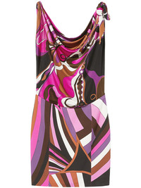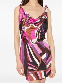 Orchidee and Iride-print mini dress Highlights - Fuchsia pink/multicolour - Abstract pattern print - Slip-on style - Knot detailing - Cowl neck - Sleeveless - Draped detailing - Fitted waistline - Straight hem - Thigh-length Made in Italy Composition Viscose 100%