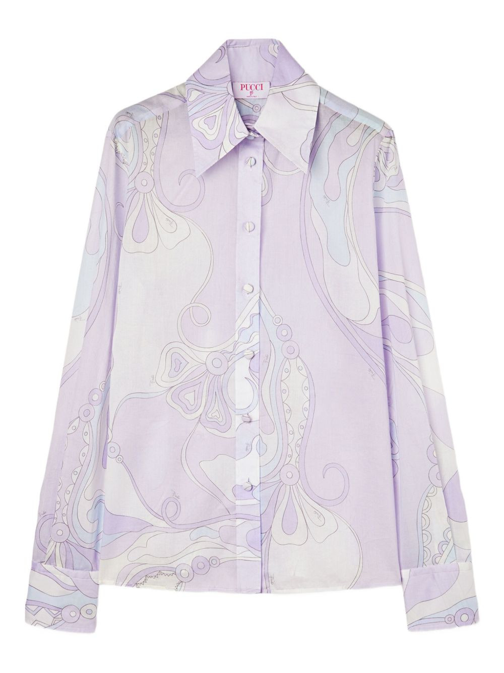 orchidee-print cotton shirt Highlights - Light purple - Orchidee print - Long sleeves - Front button fastening - Classic collar Made in Italy Composition Cotton 100% Washing instructions Read Manufacturer Guidelines