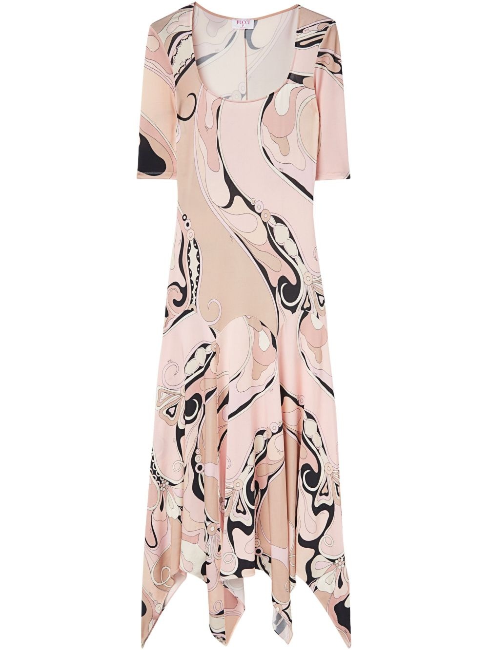 orchidee-print dress Highlights - Beige - Scoop neck - Half-length sleeves - Flared hem Made in Italy Composition Viscose 95%, Elastane 5%