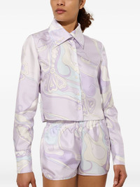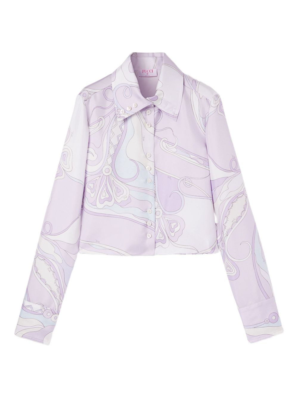 Orchidee-print silk shirt Highlights - Light purple - Orchid print - Long sleeves - Front button fastening - Classic collar - Cropped length Made in Italy Composition Silk 100% Washing instructions Read Manufacturer Guidelines