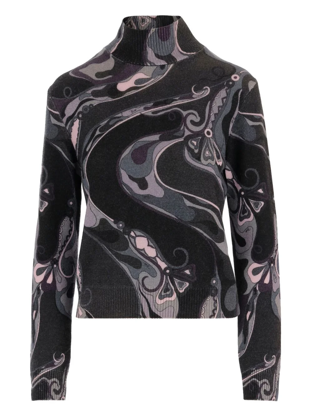 ORCHIDEE PRINT HIGH NECK SWEATER IN WOOL
