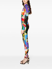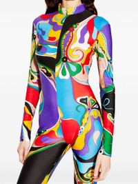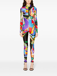 padded mock neck jumpsuit Highlights - Blue/multicolour - Padded mock neck - Rear zip fastening - Bodycon design - All-over graphic print - Long sleeves Made in Italy Composition Lycra 100%