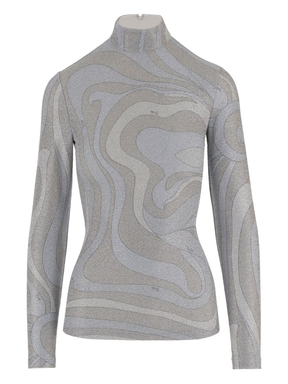 patterned top Highlights - Silver - Patterned - Crew neck - Long sleeves Made in Italy Composition Polyamide 65%, Polyester 30%, Spandex/Elastane 5% Washing instructions Read Manufacturer Guidelines