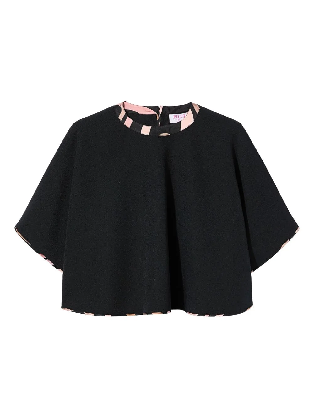 printed-trim top Highlights - Black - Short sleeves - Round neck - Abstract-print lining Made in Italy Composition Polyester 90%, Elastane 10% Washing instructions Do Not Wash/Do Not Dry Clean