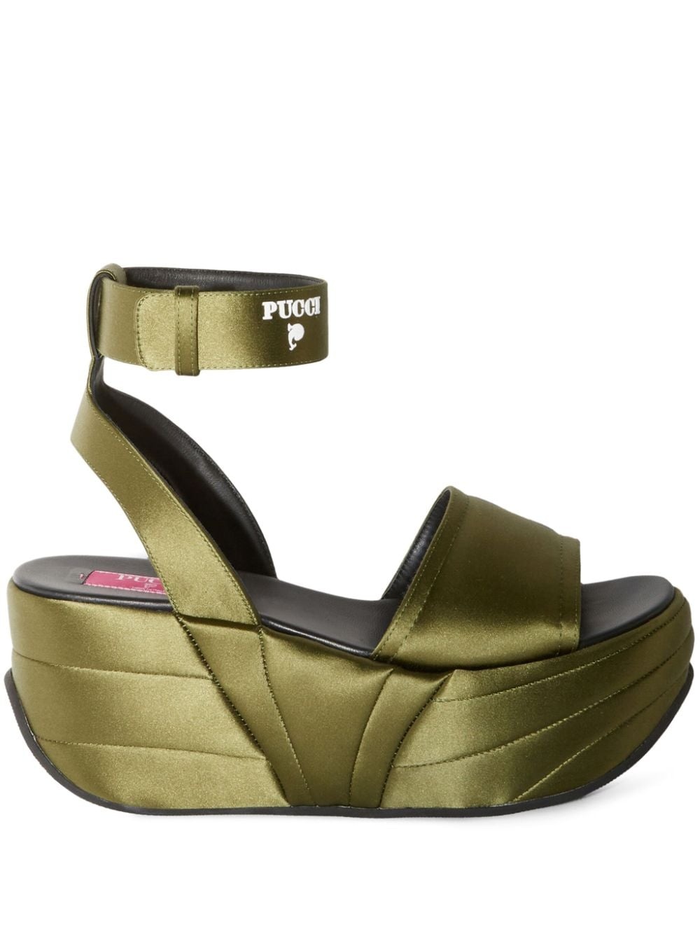 Pucciami platform sandals Highlights - Green - Leather - Satin finish - Buckle-fastening ankle strap - Branded footbed - Round open toe - Platform sole Made in Italy Composition Silk 100% SIZE & FIT Measurement HEEL 3.54 in(9 cm)