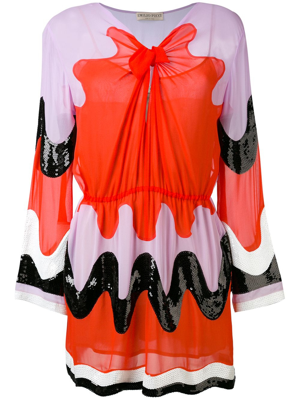retro print dress Multicolour silk retro print dress from Emilio Pucci. Made in Italy Composition Silk 100% SIZE & FIT Model measurements Height 5 ft 10 in(1.77 m) Bust/Chest 32.28 in(82 cm) Hips 35.82 in(91 cm) Waist 24.8 in(63 cm) Washing instructions Dry Clean Only