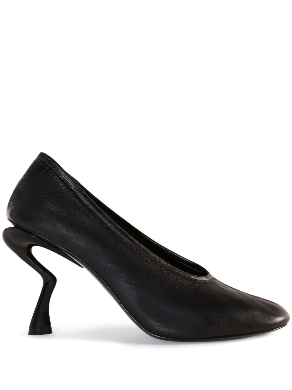 80mm round toe leather pumps Highlights - Black - Leather - 80mm sculptural heel - Round toe - Branded footbed - Slip-on style Made in Italy Composition Lining: Leather 100% Sole: Leather 100% Outer: Lambskin 100% SIZE & FIT Measurement HEEL 3.14 in(8 cm)