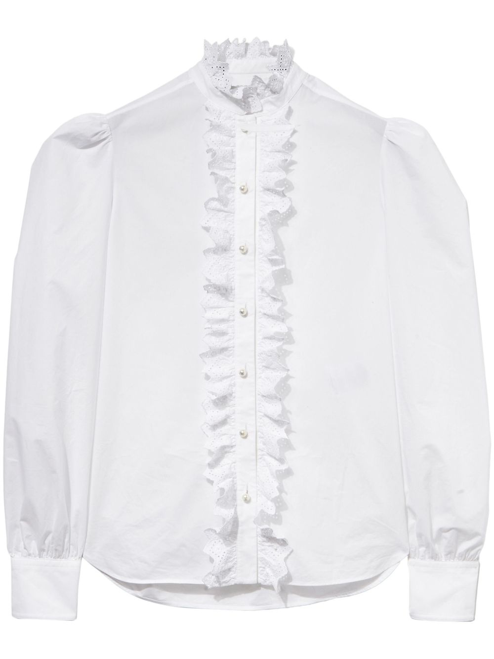 ruffled cotton shirt Highlights - White - Front button fastening - Ruffled detailing - Buttoned cuffs Made in Italy Composition Cotton 100% Washing instructions Dry Clean Only
