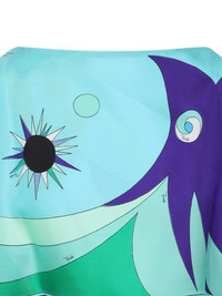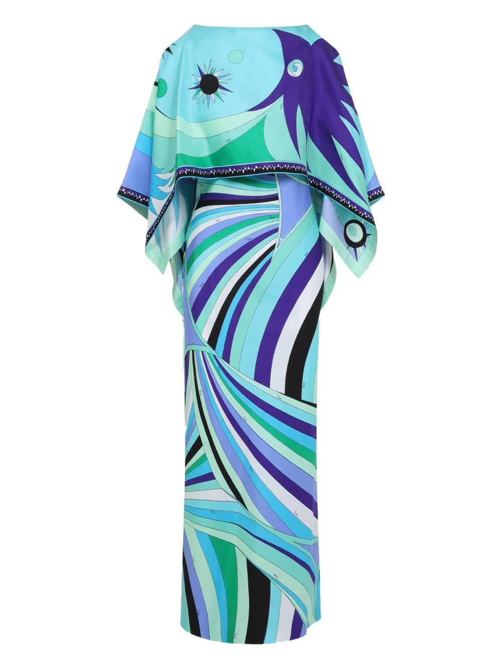 silk dress Highlights - Blue - Cape design - Abstract pattern print Made in Italy Composition Silk 100%