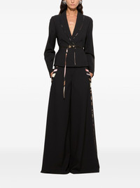 single-breasted blazer Highlights - Black - Front button fastening - Plunging v-neck - Long sleeves - Fitted waistline Made in Italy Composition Outer: Silk 100%, Virgin Wool 95%, Elastane 5% Lining: Silk 100%