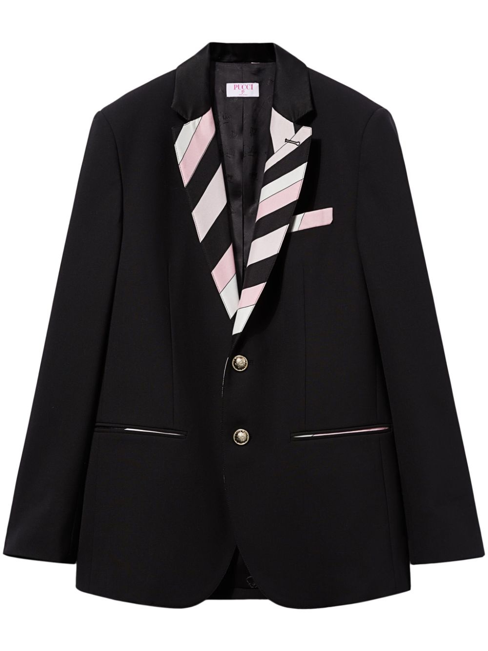 single-breasted jacket Highlights - Black - Virgin wool blend - Front button fastening - Notched lapels - Long sleeves - Two side welt pockets - Internal logo patch Made in Italy Composition Virgin Wool 95%, Elastane 5%