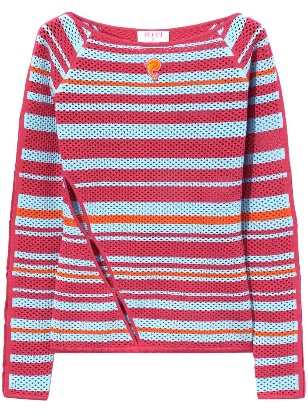 striped top Highlights - Pink - Cut-out detailing - Crew neck - Long sleeves - Straight hem Made in Italy Composition Viscose 70%, Polyester 30% Washing instructions Dry Clean Only