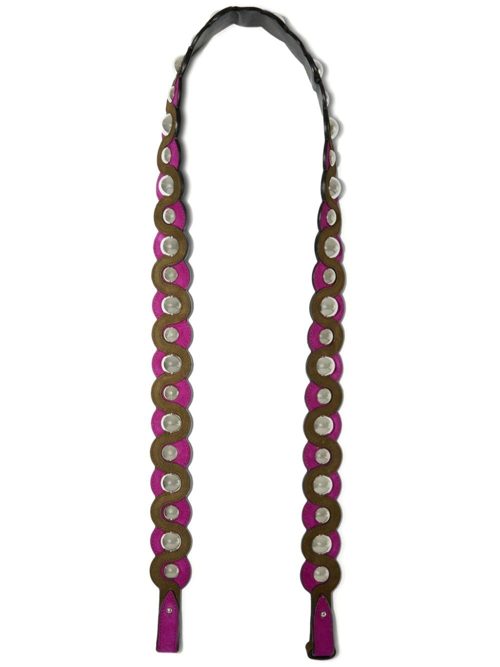 studded suede shoulder strap Highlights - Dark magenta/coffee brown - Calf suede - Circular motif - Panelled design - Silver-tone stud embellishment Made in Italy Composition CALFSKIN 100%