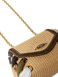 Tressage logo-plaque bag Highlights - Beige/cedar brown - Silk/leather/cotton blend - Interwoven design - Gold-tone logo plaque - Chain-link shoulder strap - Foldover top with magnetic fastening - Main compartment Made in Italy Composition Outer: Leather 100%, Silk 100%, Cotton 52%, Nylon 48% SIZE & FIT Measurement DEPTH 3.14 in(8 cm) HEIGHT 5.11 in(13 cm) WIDTH 7.08 in(18 cm)