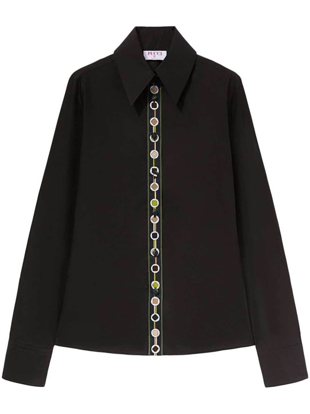 Vivara-print cotton shirt Highlights - Black - Cotton - Vivara-print panel detailing - Fabric-covered buttons - Oversized pointed collar - Front button fastening - Long sleeves - Straight hem Made in Italy Composition Cotton 100%