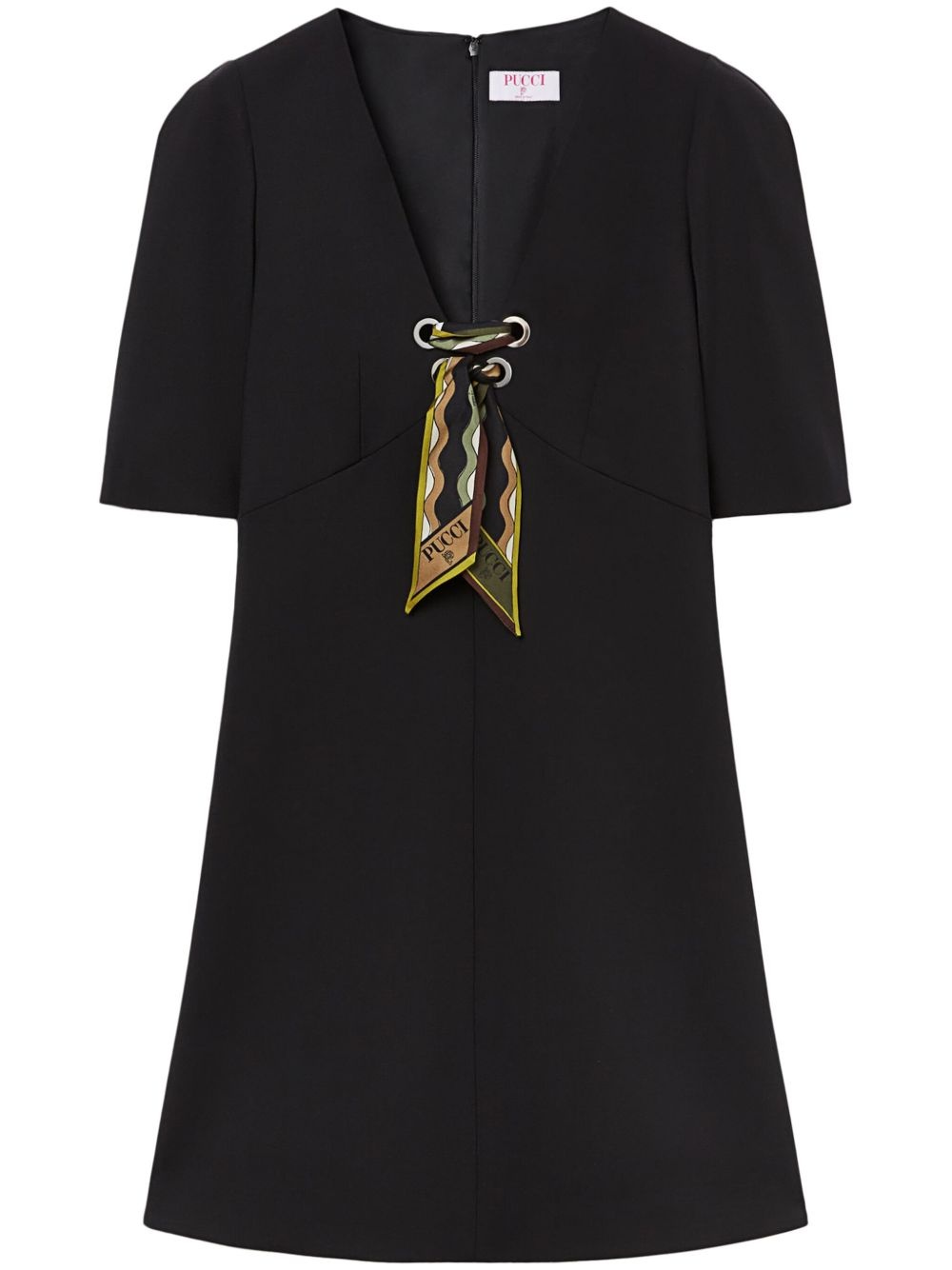 Vivara-print dress Highlights - Black - Concealed rear zip fastening - V-neck - Lace-up detailing - Short sleeves Made in Italy Composition Outer: Virgin Wool 95%, Spandex/Elastane 5% Lining: Acetate 67%, Polyester 33%