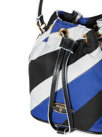 Yummy bucket bag Highlights - Blue/black/white - Leather - Smoothing finish - Iride-print - Drawstring fastening - Single top handle - Logo plaque - Detachable shoulder strap - Main compartment Made in Italy Composition Outer: Smooth Leather 100%, Nylon 100% SIZE & FIT Measurement DEPTH 3.93 in(10 cm) WIDTH 5.11 in(13 cm) HEIGHT 6.29 in(16 cm)