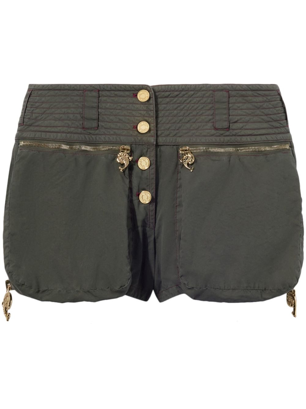 zip-detail cargo shorts Highlights - Dark green - Cotton-silk blend - Branded zip puller - Zip details - Mid-rise - Belt loops - Front button fastening - Two front cargo pockets - Thigh-length Made in Italy Composition Cotton 65%, Silk 35% Washing instructions Do Not Wash/Do Not Dry Clean