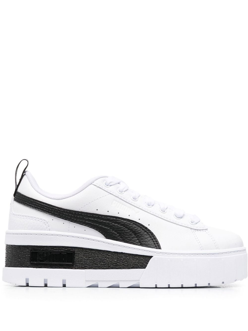 colour-block calf-leather sneakers white/black calf leather perforated detailing logo-print tongue logo patch to the side round toe front lace-up fastening branded insole contrasting rubber sole Imported Composition Leather 100% SIZE & FIT Measurement HEEL 2.16 in(5.5 cm) Sole height 1.37 in(3.5 cm)
