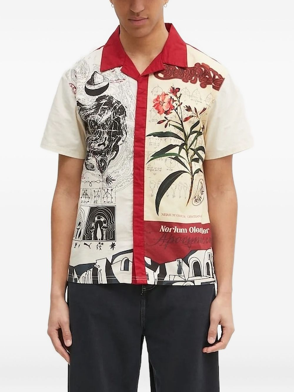 floral-print two-tone shirt Highlights - Red and beige - Short sleeves - Embroidered emblem - Botanical print - Button fastening Imported Composition Fabric 100% Washing instructions Read Manufacturer Guidelines