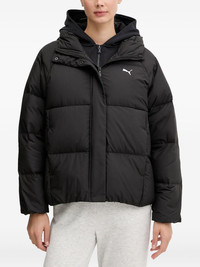hooded logo-detail jacket Highlights - Black - Logo detail - Hooded - Button fastening - Zip fastening Imported Composition Outer: Polyester 100% Lining: Polyester 100% Filling: Duck Down 100% Washing instructions Read Manufacturer Guidelines