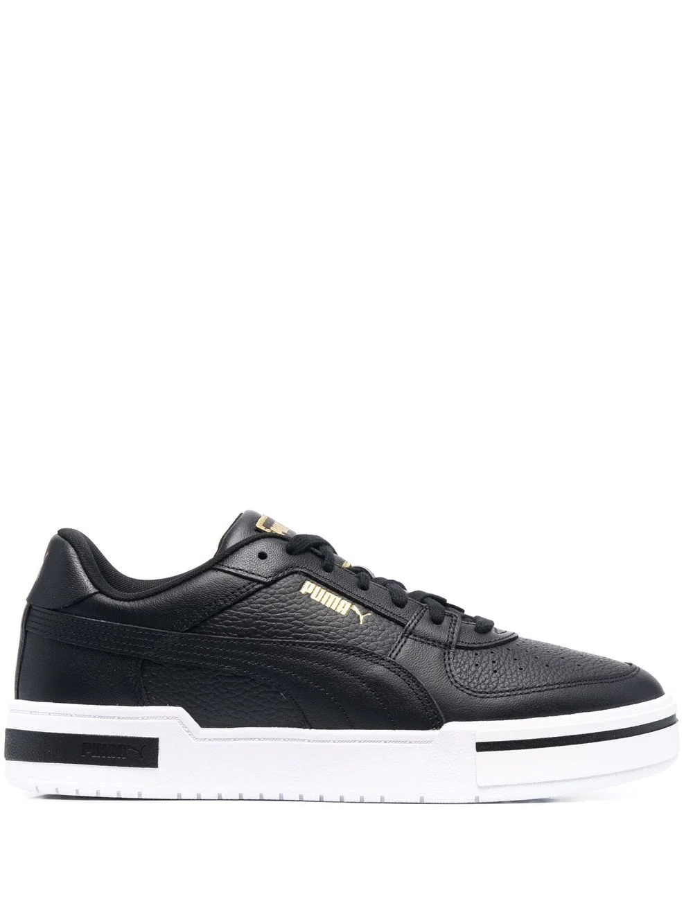 logo-print low-top leather sneakers black leather panelled design grained texture perforated detailing gold-tone logo lettering logo-print tongue round toe contrasting heel counter branded leather insole flat rubber sole Imported Composition Sole: Rubber 100% Lining: Fabric 100% Outer: Calf Leather 100% SIZE & FIT Measurement HEEL 1.18 in(3 cm) Sole height 1.18 in(3 cm)