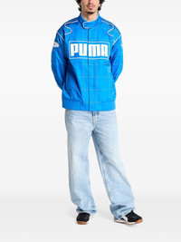 padded racer jacket Highlights - Azure - Concealed front zip fastening - Two side welt pockets - Ribbed cuffs and hem - Logo print to the front Imported Composition Outer: Polyester 50%, Recycled Polyester 50% Lining: Polyester 100% Washing instructions Machine Wash