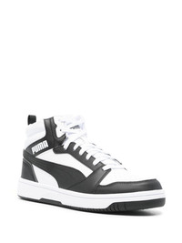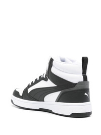 Rebound sneakers Highlights - White/black - Faux leather - Smooth grain - Front lace-up fastening - Ankle-length - Pull-tab at the heel - Padded ankle - Branded heel counter - Formstrip logo - Logo patch at the tongue - Perforated toebox - Round toe - Branded insole - Flat rubber sole Imported Composition Other fibres 100% SIZE & FIT Measurement HEEL 1.57 in(4 cm) HEIGHT 3.93 in(10 cm) Sole height 1.18 in(3 cm)