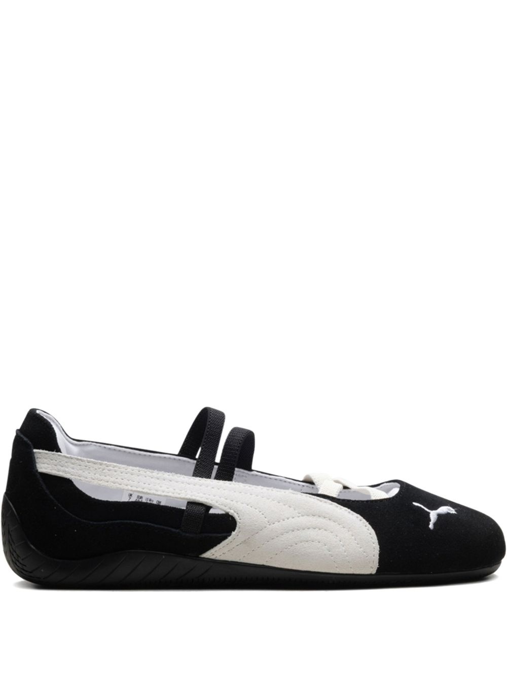 Speedcat Ballet "Black/White" ballet flats Highlights - Black/white - Colour-block panelled design - Cut-out detailing - Elasticated straps - Crossover strap detail - Embroidered logo to the front - Round toe - Branded insole - Flat sole Imported Composition Outer: Calf Suede 100% Sole: Rubber 100% Lining: Fabric 100%