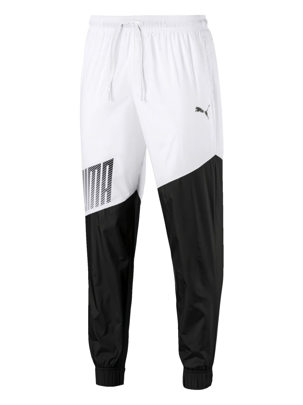 woven trousers Highlights - Black and white - Logo detail - Zip at the ankles - Drawstring fastening - Side seam pockets - Woven texture Imported Composition Fabric 100% Washing instructions Machine Wash